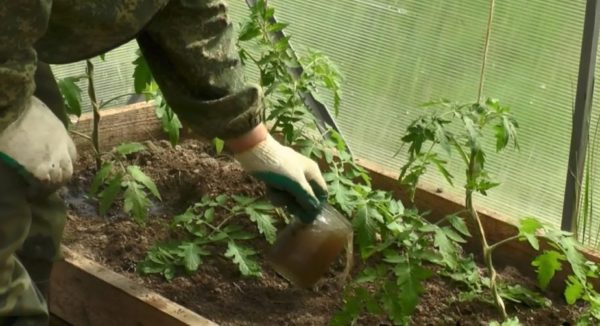 Els tomàquets fertilitzants cultivats en envasos separats es realitzen segons l’esquema descrit, i a petició de plantes suplementades amb fertilitzants per torn, ja que el sòl en un espai limitat s’esgota ràpidament.