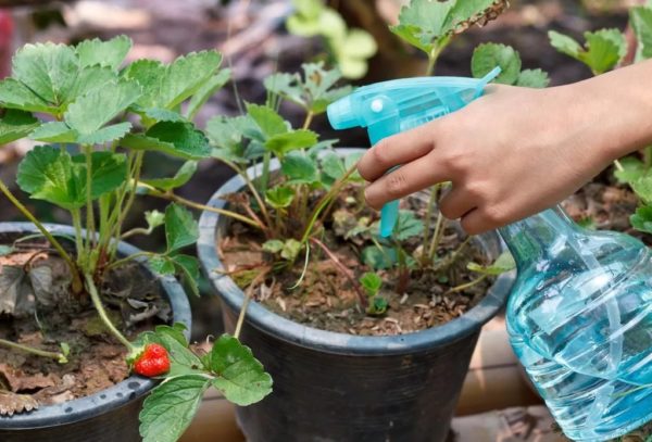 Els excrements de fems i pollastre s’utilitzen amb molta cura, ja que l’excés pot cremar matolls de maduixa.