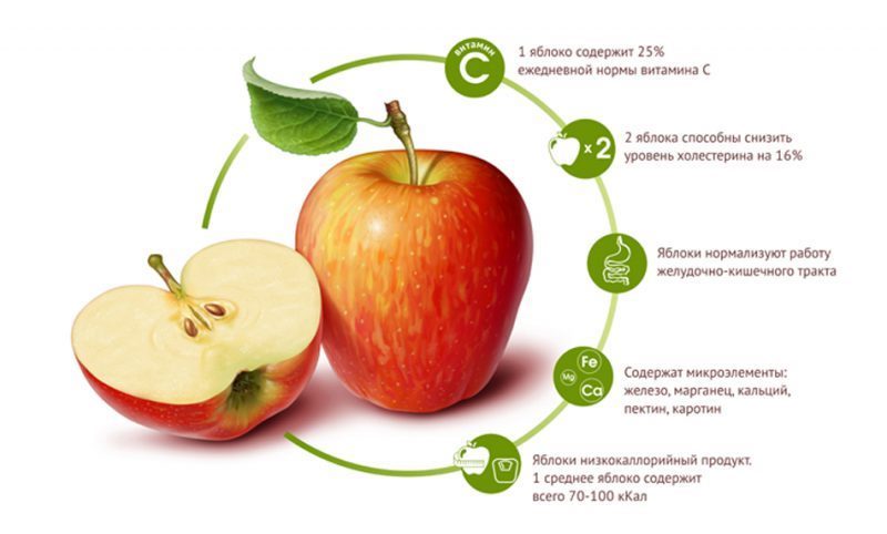 El contingut màxim de nutrients es fixa en fruites acabades de recollir. Però és important tenir en compte que les fruites no s’utilitzen només en la seva forma crua: les pomes en remull, seques i al forn conserven una rica composició de nutrients i s’utilitzen com a plats independents o en combinació amb altres productes.