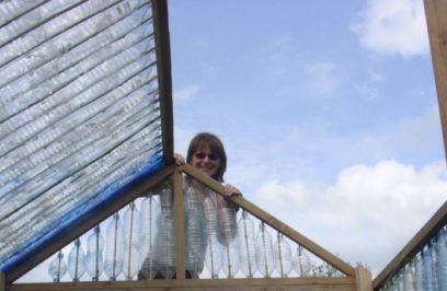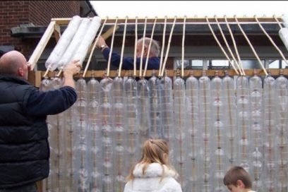 - Ja està a punt un hivernacle fet d’ampolles de plàstic buits. Resta equipar les dorses amb sòl nutritiu al seu interior i plantar plantes conreades.