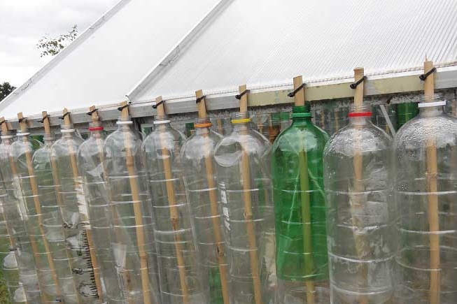 - La força és molt elevada. La pel·lícula de polietilè, que s'utilitza en la majoria dels casos com a agent de recobriment, és fràgil i delicada en comparació amb el plàstic. Les parets de l’ampolla resisteran tranquil·lament a la pressió de la neu, fortes ratxes de vent, exposició a la llum solar.