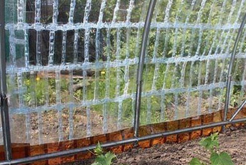 Estic d’acord amb el mestre que és més fàcil cosir amb un policarbonat i no embolicar-se amb ampolles, sobretot amb costures. Necessitem un cotxe del temps per fer tot això. Però l’hivernacle m’ha agradat d’ampolles senceres, perquè té un aspecte agradable i decoratiu. I fins i tot pot ser més pràctic que el policarbonat, ja que té ventilació natural a través de les esquerdes entre les ampolles.