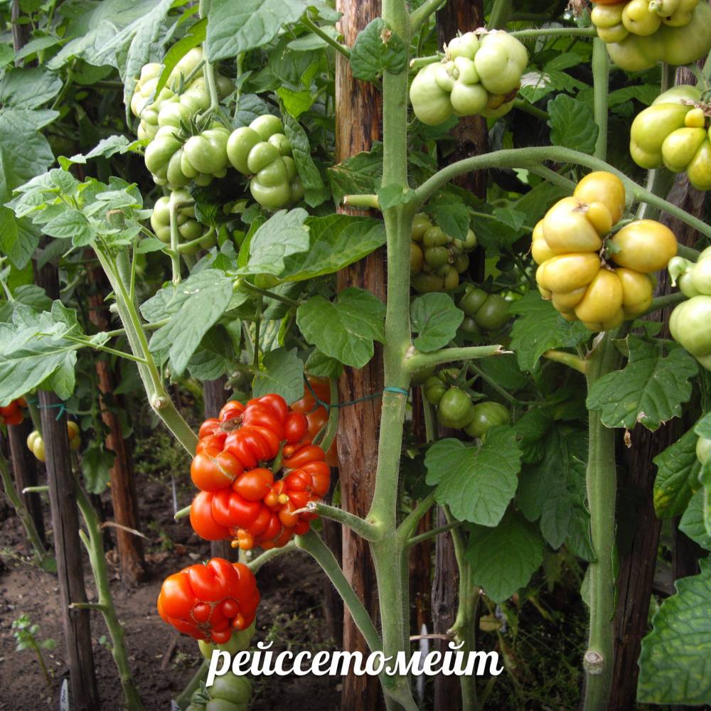 Entre les varietats de tomàquet exòtics hi ha la varietat Reisetteyt. L'aspecte del tomàquet és inusual, s'assembla a grans d'all. El grau té bones qualitats aromatitzants i s'ha recomanat aterrar des d'un punt positiu. Per obtenir més informació sobre el cultiu i el rendiment del tomàquet RaseSmeteyt es pot trobar a la descripció de la varietat, característiques i ressenyes.