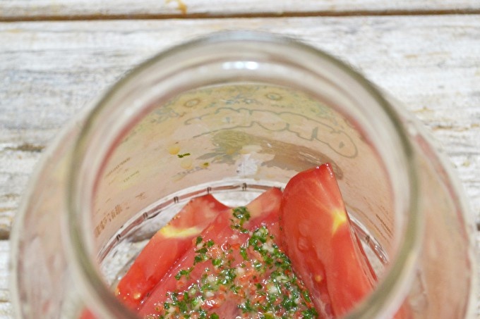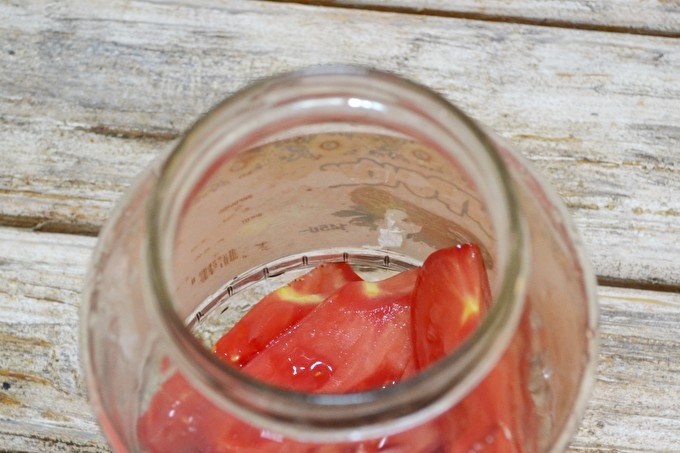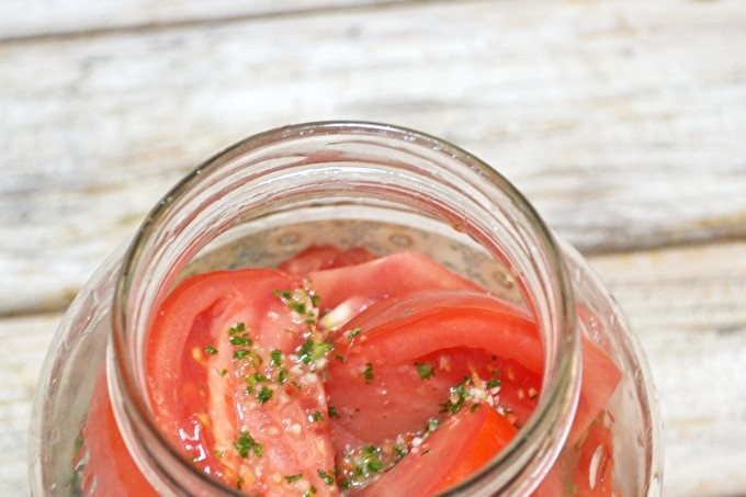 El tomàquet en cuina instantània coreana en una llauna al dia és la recepta més deliciosa per a un refrigeri vegetal salat. Ja a la foto podeu veure la facilitat de preparació.