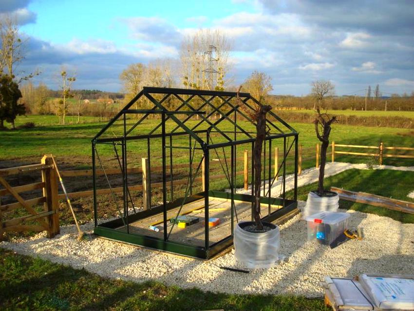 La construcció lleugera d’hivernacles necessita ponderar-se per resistir els vents agitatats. No podeu utilitzar cap base quan fixeu el marc al terra amb l'ajut de tacs llargs incrustats al terra.