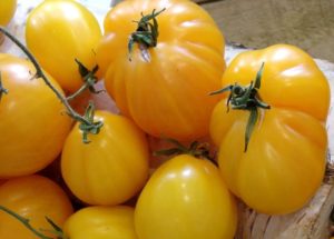 A més dels tradicionals tomàquets vermells, els jardiners cultiven varietats de fruita groga a les seves parcel·les. Contenen grans quantitats de provitamina A útils per al cos humà, així com altres vitamines i minerals. Aquests tomàquets són valorats per l’elevada dolçor de la fruita. Els jardiners intenten recollir-los el més dolç tomàquets de terra oberta, creixent en hivernacles, per obtenir no només una collita alta, sinó també saborosa.