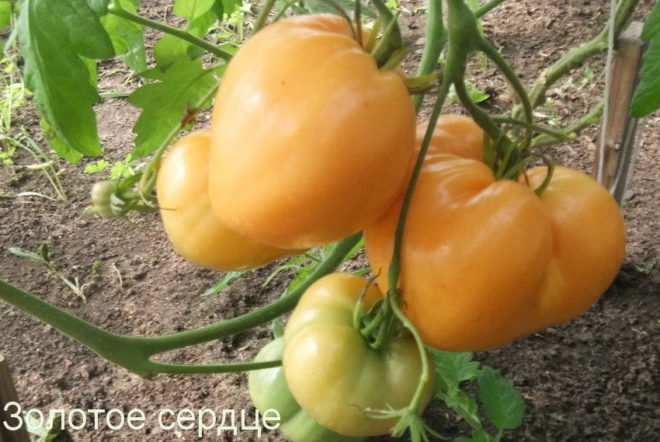 200-240 grams cultiven bells tomàquets grocs amb el nom original Golden Heart. La varietat es distingeix per la maduració primerenca, les plantes compactes i la cura sense pretensions.