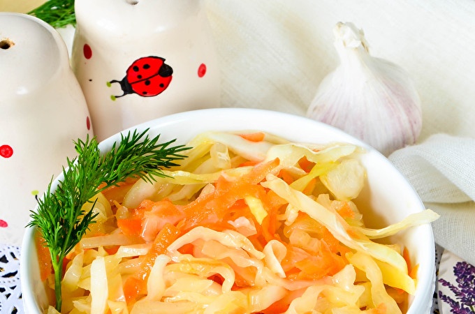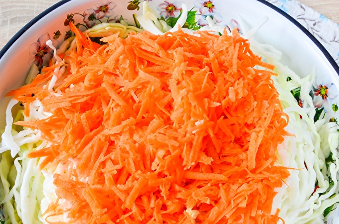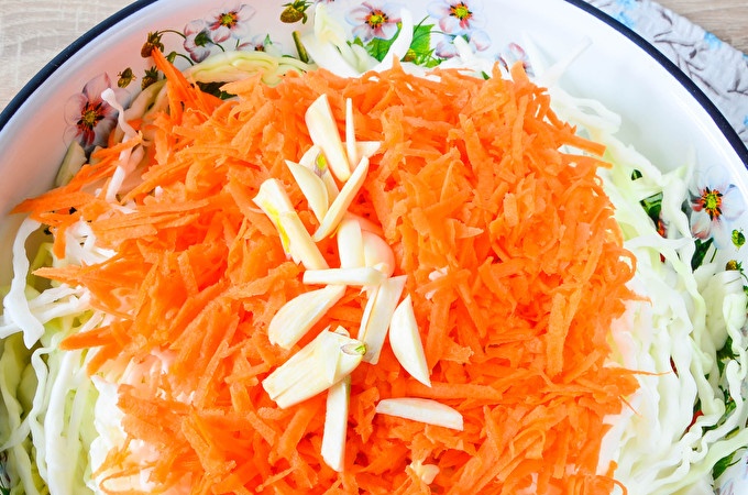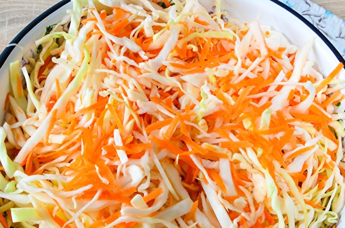 Barregeu-ho tot amb cura i fins que es reparteixi la pastanaga i l'all uniformement entre la col. Al mateix temps, no és necessària la col de pastes.