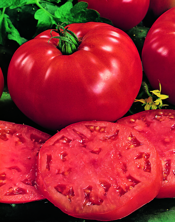 - Les fruites tenen un color vermell brillant. Poden tenir vores fortament pronunciades i ser més planes. Aquesta varietat també té un tomàquet de contrapart vegetal "Big White Beefsteak". També té un arbust potent, grans fruits d’un color verd clar.